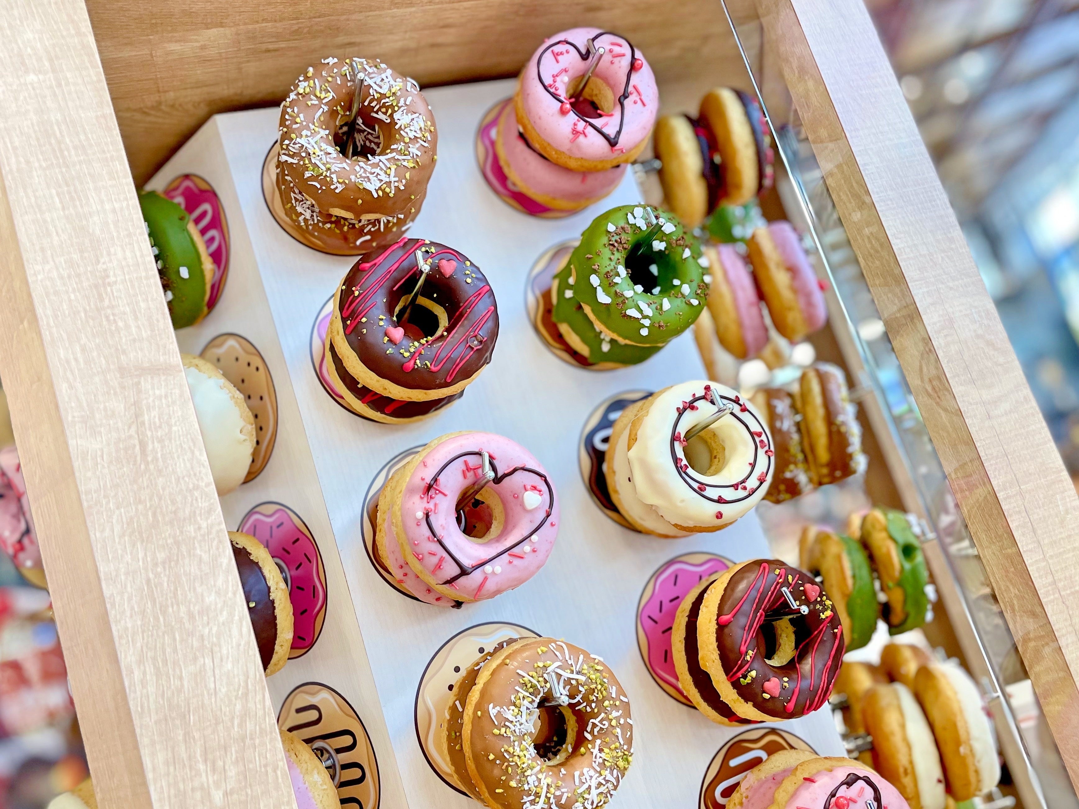 しかも催事限定での出張販売、今回はバレンタイン仕様のキュートなデコレーションのドーナツも用意され、見て、選んで、食べて美味しい。楽しい。夢のような体験型販売となっている。