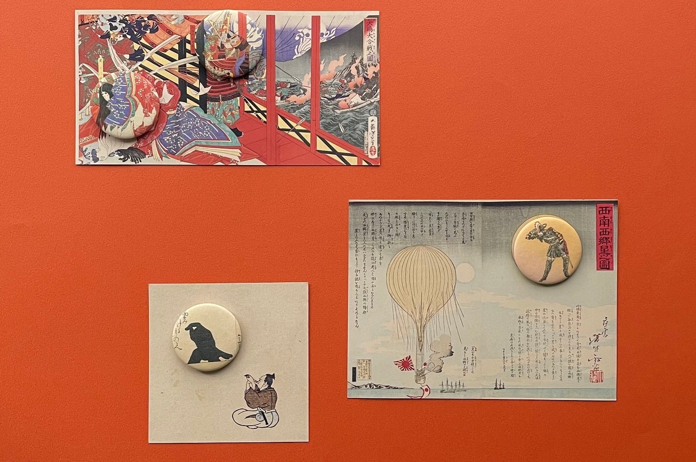 ユニークな構図で描かれた浮世絵作品の一部分をくり抜きました。缶バッジとしてのご使用はもちろん、台紙と一緒に飾るのもおすすめです。Store 1894では、芳幾と芳年の世界観をお楽しみいただけるグッズをご用意しています。