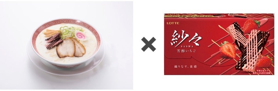 今年で3年目となるロッテ様とのコラボレーション商品の「チョコレートらーめん」は、ブラックとホワイトの2種類の味に美しい見た目、パリッとした繊細な食感の「紗々」をトッピングしました。