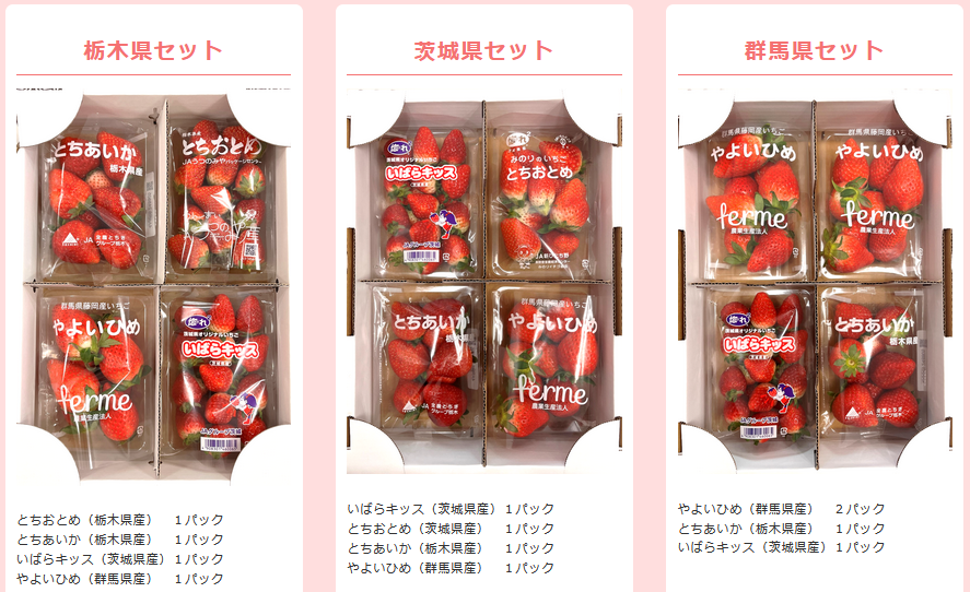 JA全農が運営する産地直送通販サイト「JAタウン」は、2月8日(水)から2月21日(金)まで、「北関東3県魅力度向上キャンペーン」として「北関東3県のいちごの食べくらべセット」の販売を行います。