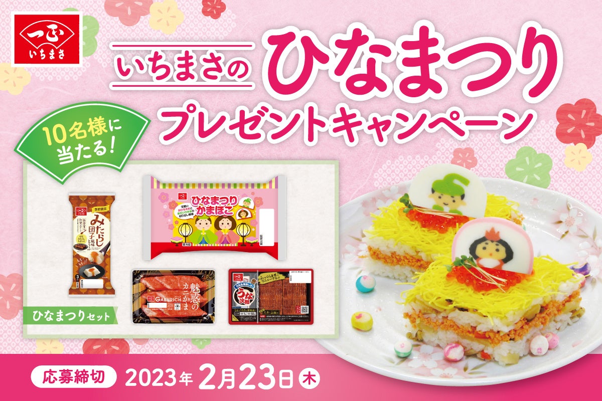「ひなまつりかまぼこ」を含む、3月3日のひなまつりの食卓準備にピッタリないちまさ商品セットが当たるTwitterキャンペーン。