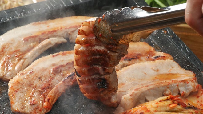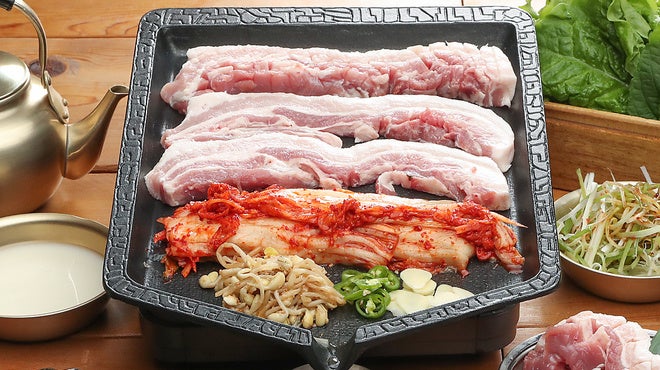 サムギョプサルは本場韓国の味とてふてふオリジナルスパイスの2種類の味をお楽しみいただけます。