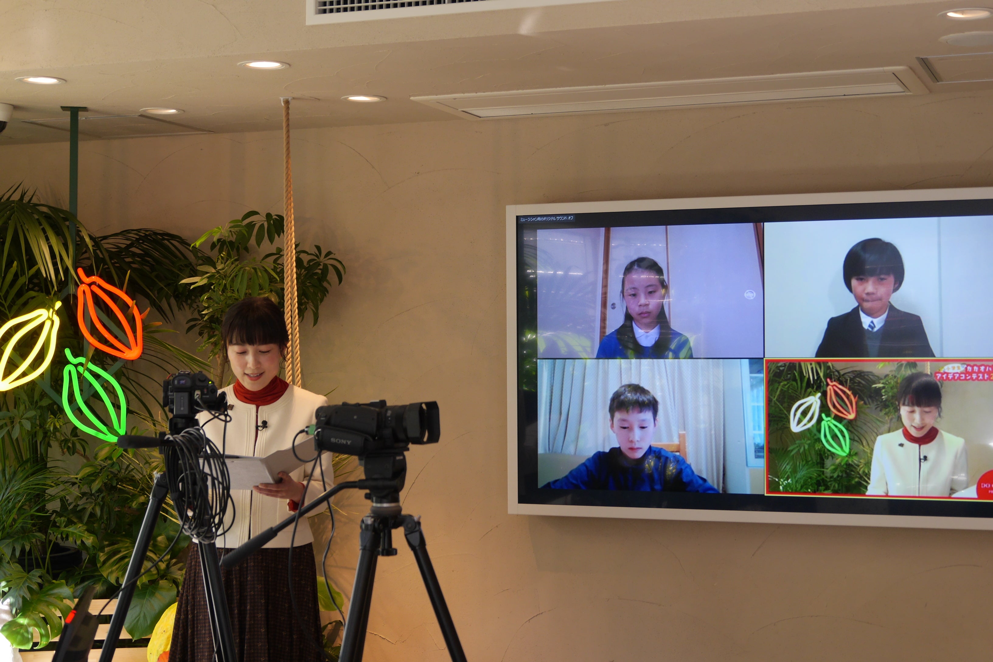 中継会場にモニターでその様子が投影