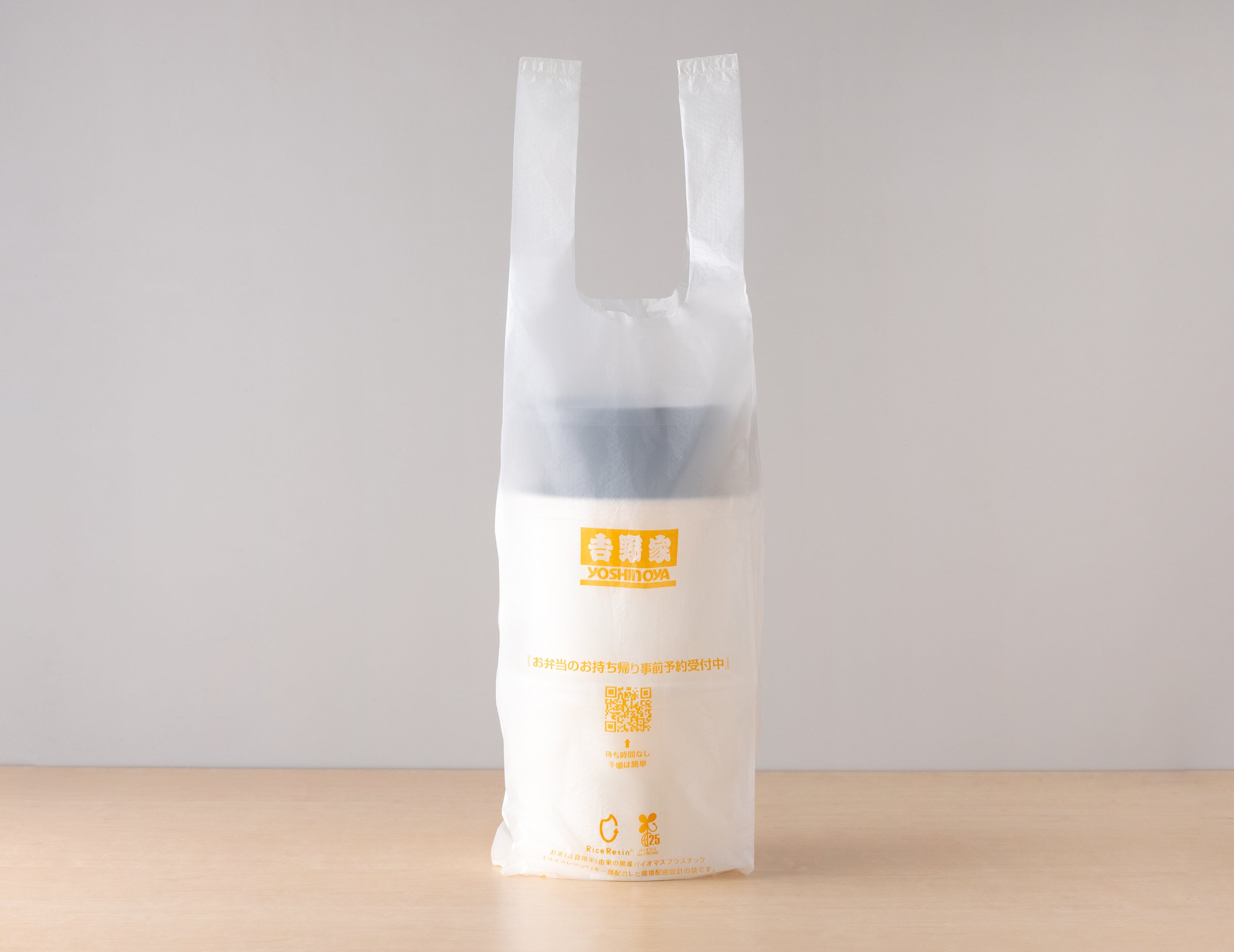 〈バイオマスプラスチック「ライスレジン®」を配合した吉野家のテイクアウト用レジ袋〉