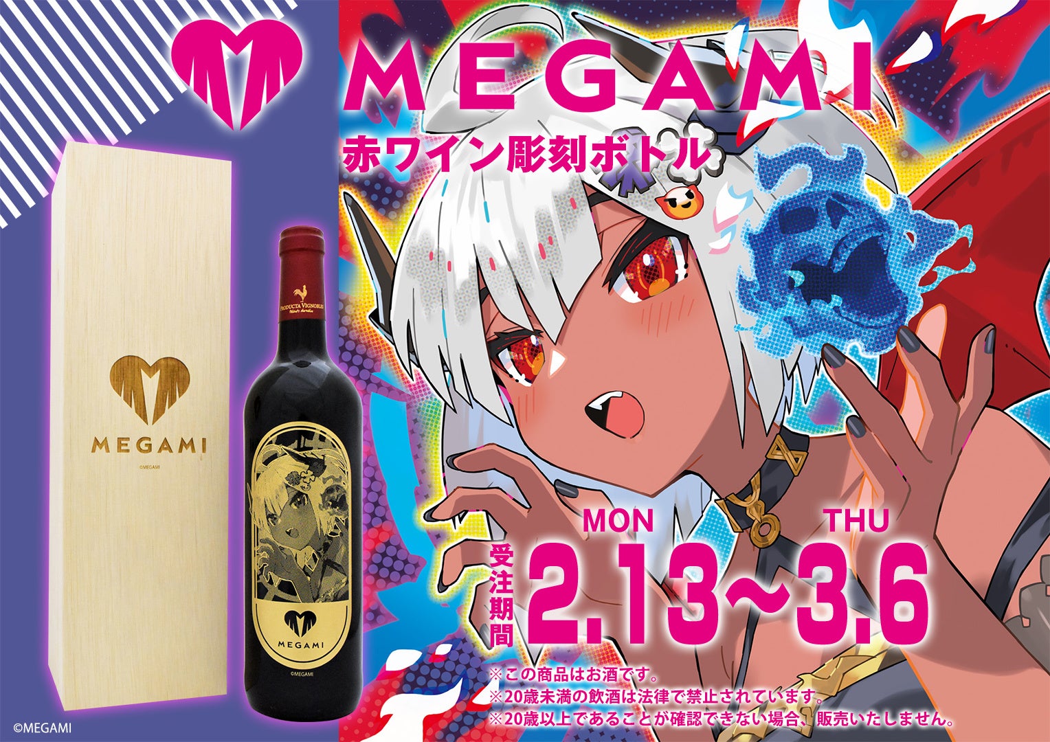 NFTで日本アニメを盛り上げるプロジェクト「OTAKU CULTURE STUDIO」(主催:株式会社A3)。本プロジェクトのひとつであるNFTプロジェクト『MEGAMI』の赤ワイン彫刻ボトルの発売が決定! 2023年2月13日から3月6日までの期間限定で受注販売されます。