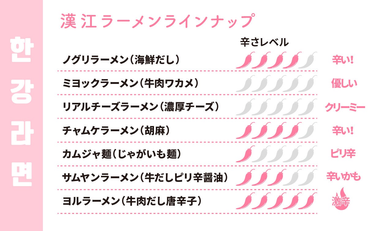 韓国で人気の7種類のラーメンの中から選んで、トッピングをつけたり、自分好みの味にしてお楽しみください!
