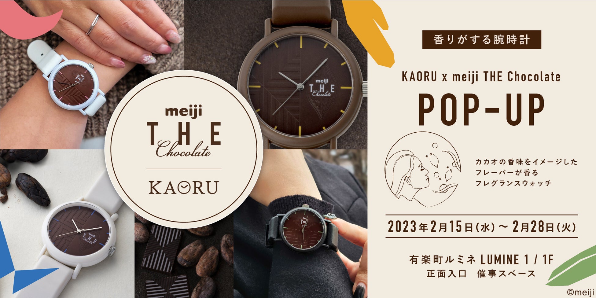 五感で愉しむ「明治 THE Chocolate」と香りに包まれる腕時計ブランド「KAORU」のアイディアを詰め込んだ、「大人が愉しむ香り」をテーマにしたコラボレーションウォッチのポップアップストアを開催します!