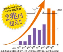 現在、食品生産~流通~店舗運営~消費に至るまでの食のバリューチェーン全体において、新たな技術やサービス導入が進められています。世界のフードテックへの投資額は年間2兆円を超えるようなビッグマーケットに拡大してまいりました。
