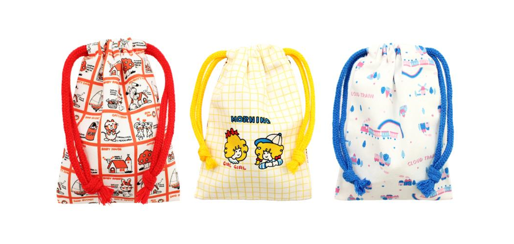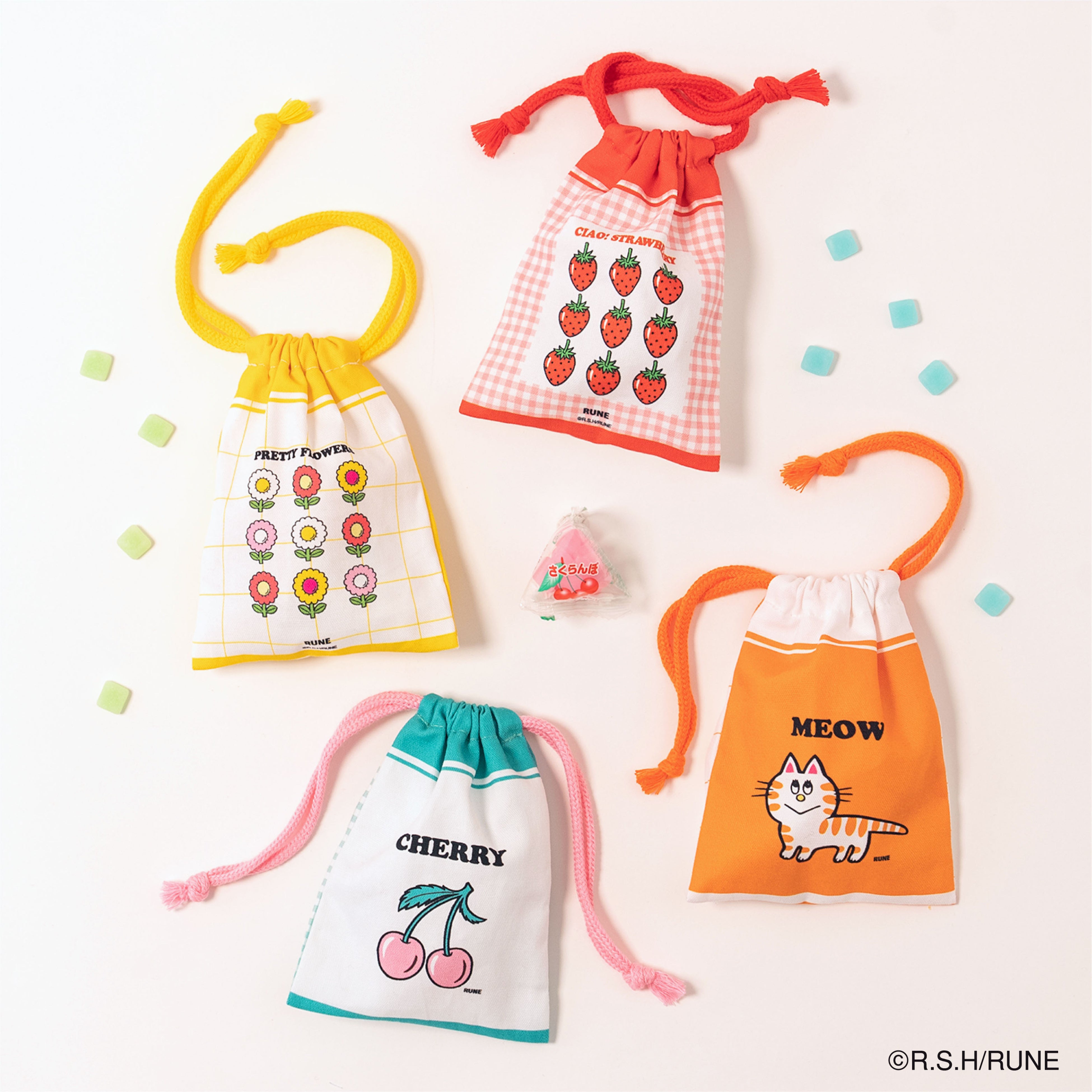 “カワイイ”文化の草分け的存在である「内藤ルネ」が描いたイラストデザインの巾着。
