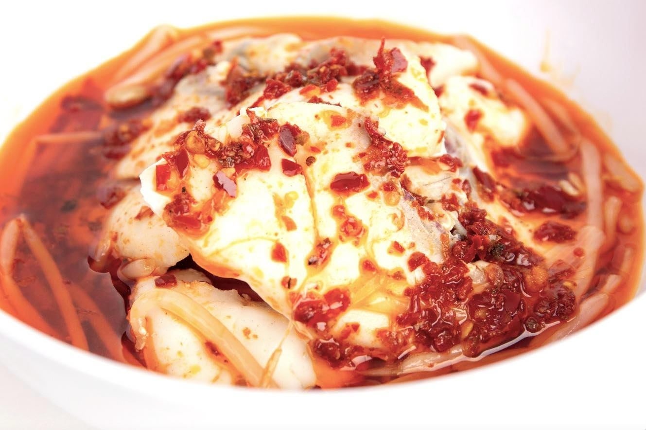 ・紅油魚片(湯引き真鯛の辣油ソース和え)