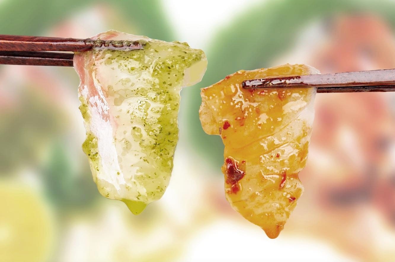 ・お刺身を楽しむ中華風ソース2種~水口魚片&椒麻魚片(よだれ魚ソース&大葉と山椒のさわやかソース)