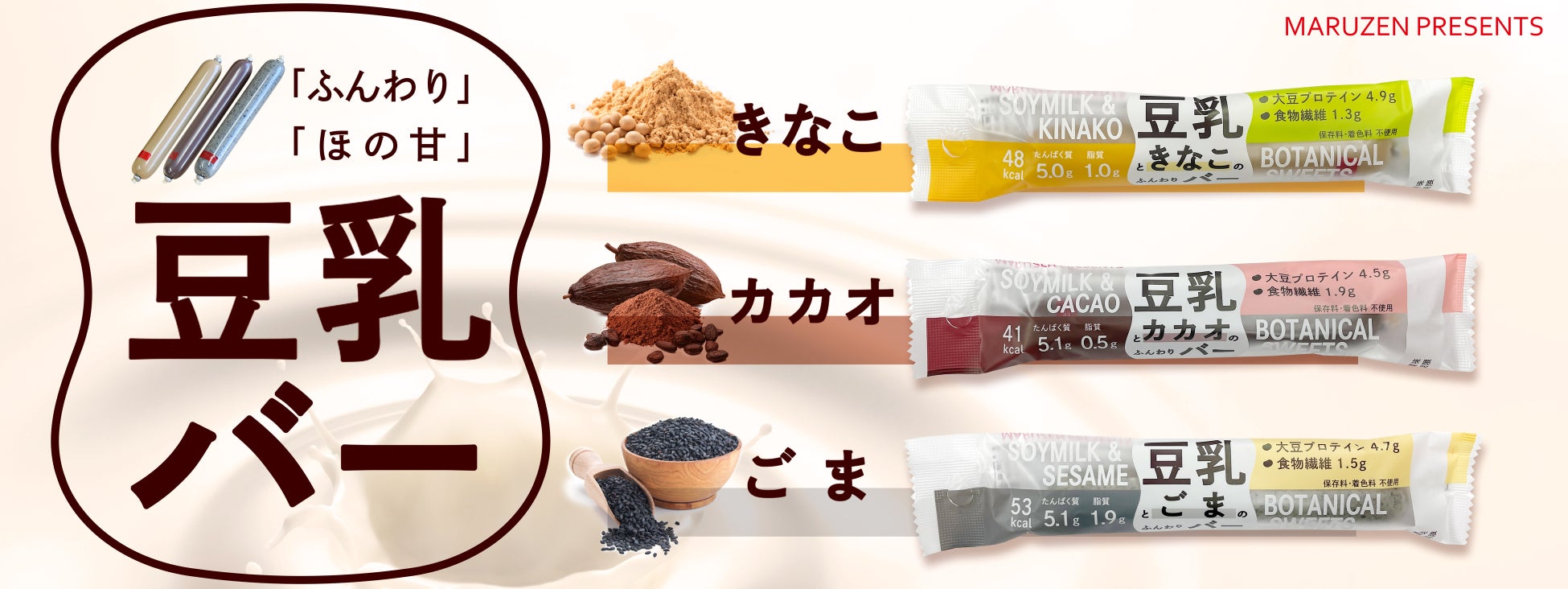 株式会社丸善(本社:東京都台東区、代表取締役社長:原壮太)は、2023年3月13日に「豆乳ときなこのふんわりバー」「豆乳とカカオのふんわりバー」「豆乳とごまのふんわりバー」を新発売いたします。