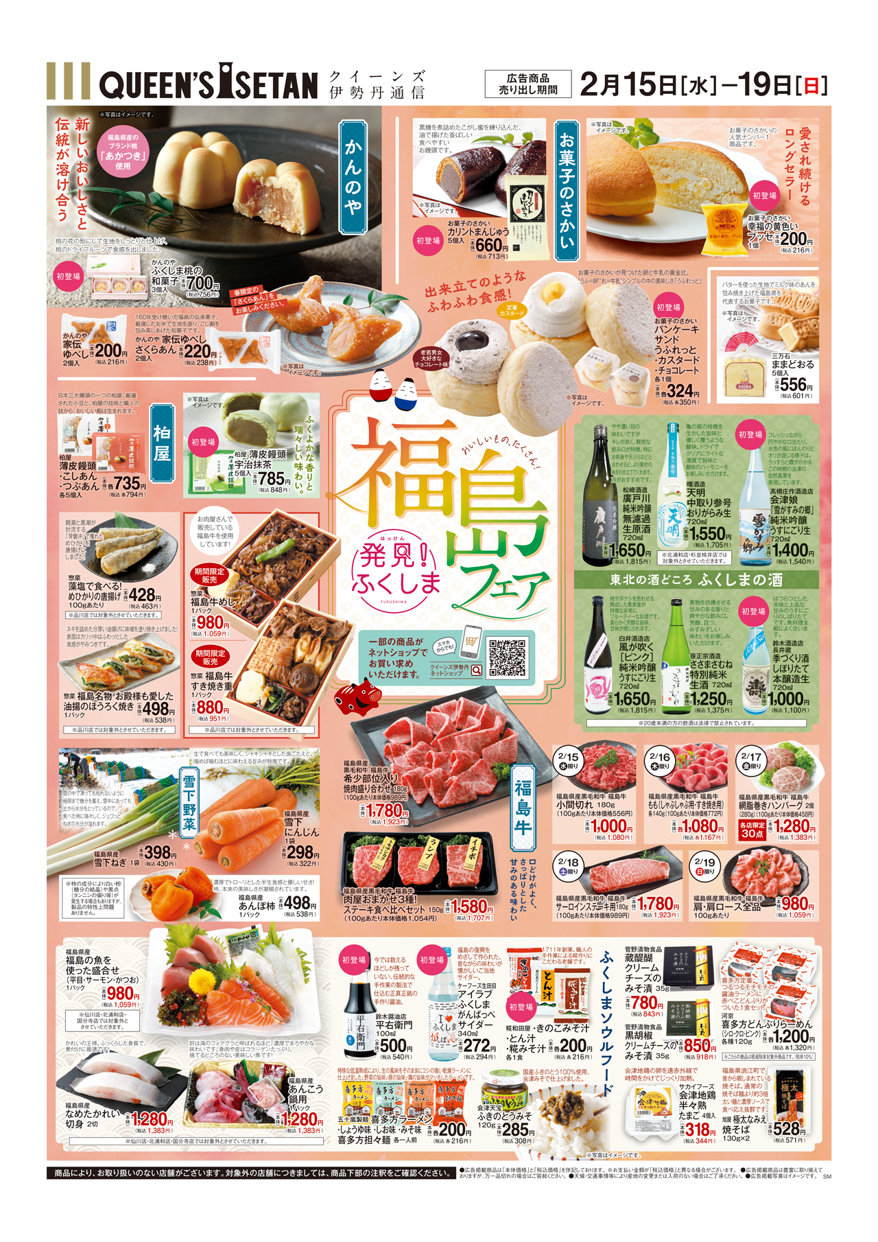クイーンズ伊勢丹では、「発見!ふくしま」とタイアップし、「福島フェア」を2月15日(水)~2月19日(日)期間限定で開催いたします。