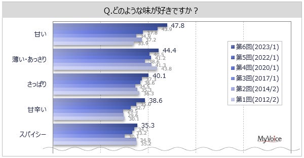 マイボイスコム株式会社(東京都千代田区、代表取締役社長:高井和久)は、6回目となる『味の好み』に関するインターネット調査を2023年1月1日~5日に実施しました。調査結果をお知らせします。