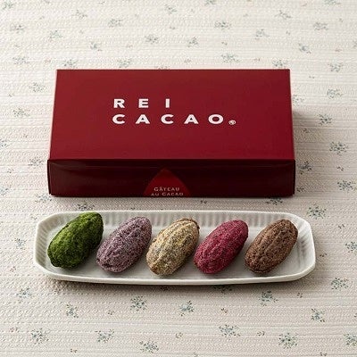 渋谷 東急フードショーのみで展開するチョコ専門店。鮮やかな色味が目を惹く「ガトーカカオ」は、チョコレートの原料、カカオポッド(実)をイメージしたカカオ型のショコラブラウニー。添加物の力ではなく、空気の力でふんわりと焼き上げたブラウニー生地で、5種類の味のクリームをサンド。