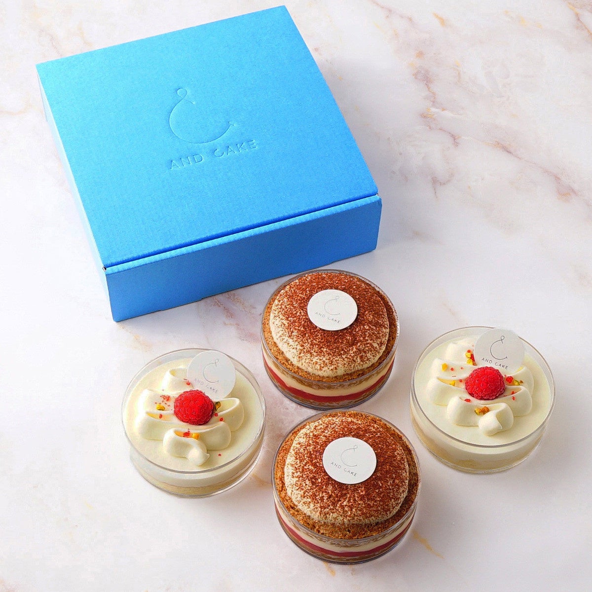人気の「ショートケーキ」と、Cake.jpホワイトデー限定の「ティラミス フレーズ」がセットになった、贅沢なプチガトーの詰め合わせ。