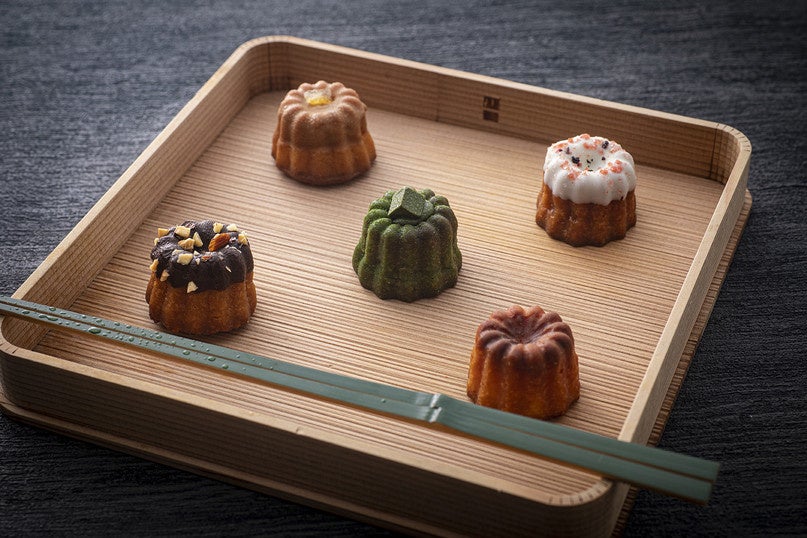 フランス・ボルドー地方の伝統的な焼き菓子であるカヌレを和風にアレンジし、伝統と新しい風を両輪で回す「富小路やま岸」ならではの味に仕上がっています。幅広い年代に親しんでいただける5つのフレーバーで、抹茶やほうじ茶とも相性の良い口どけの良い京都発の新感覚カヌレとしてご賞味ください。