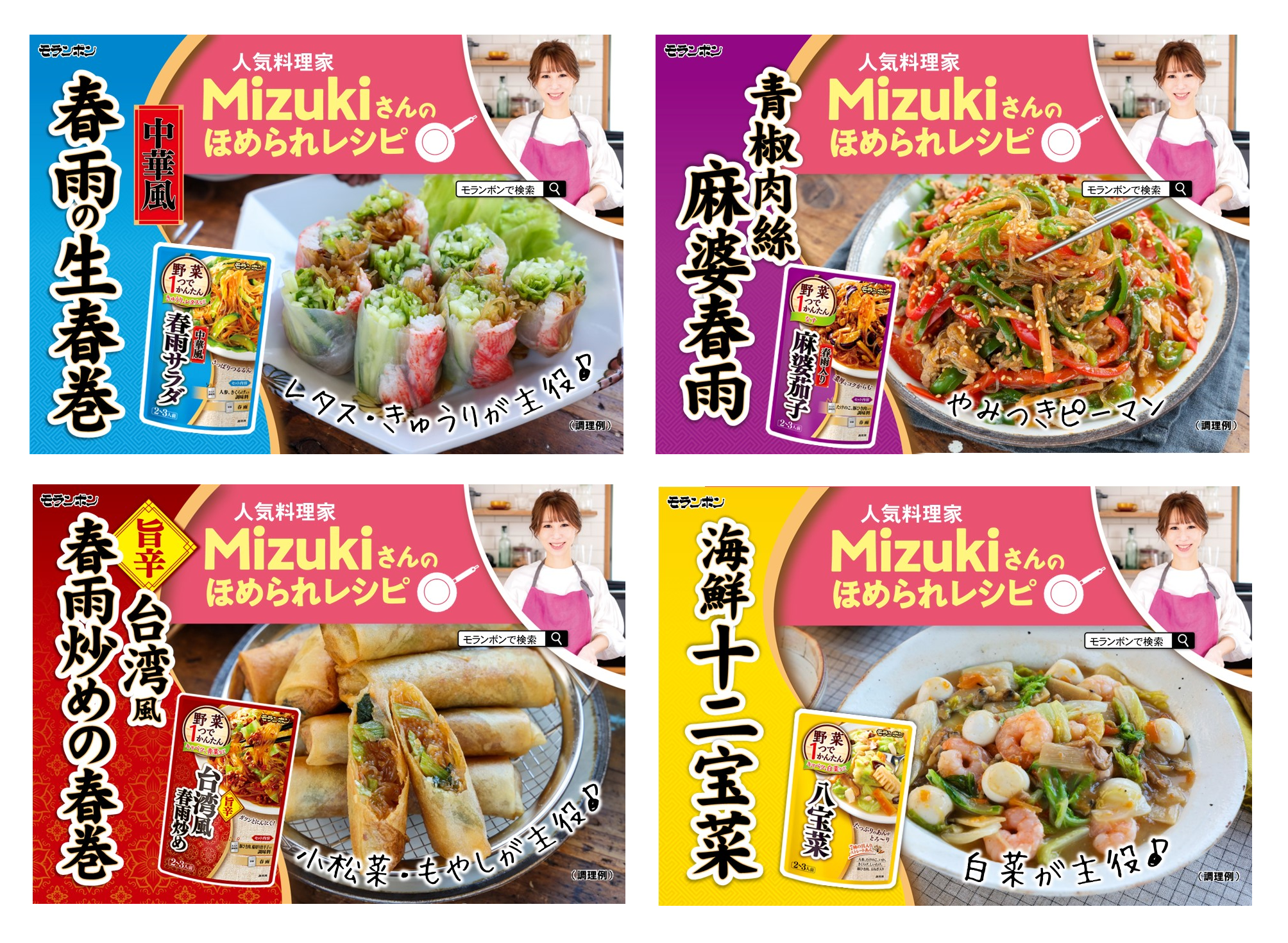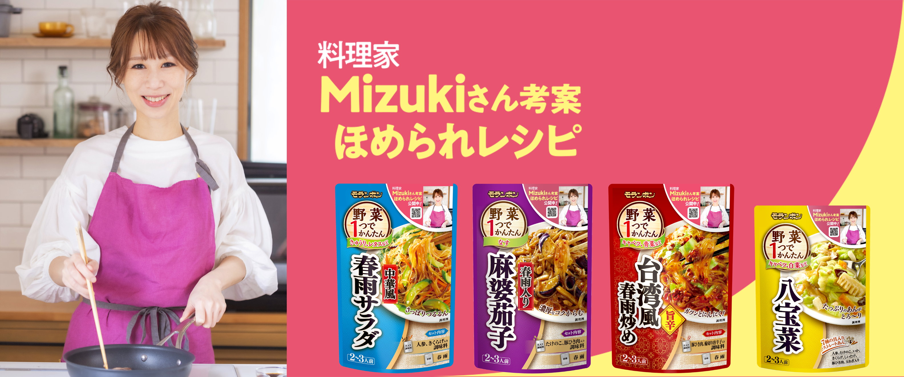 モランボン株式会社(本社:東京都府中市 代表取締役社長:全 峰 碩)は、野菜が主役になる平日のプチハレメニューとして、人気料理家のMizukiさんに青果売場向けメニュー専用調味料「野菜1つでかんたんシリーズ」を使った「ほめられレシピ」を考案していただきました。これらのほめられレシピを2月15日(水)よりスーパーの店頭や、ホームページ、SNSにて発信し、簡便性が求められる平日でもひと工夫するだけで、当たり前の毎日が特別になるようなメニューを提案いたします。