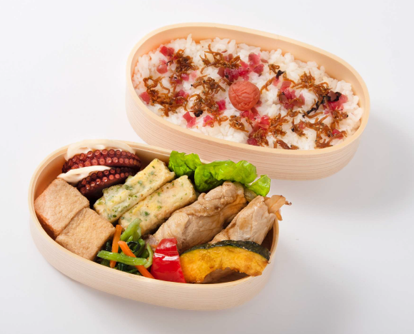 兵庫県産のお米、淡路島産の玉ねぎ、明石たこなど兵庫のおいしい食材を使った、“兵庫愛“たっぷりのお弁当で彩りの良さも抜群です。