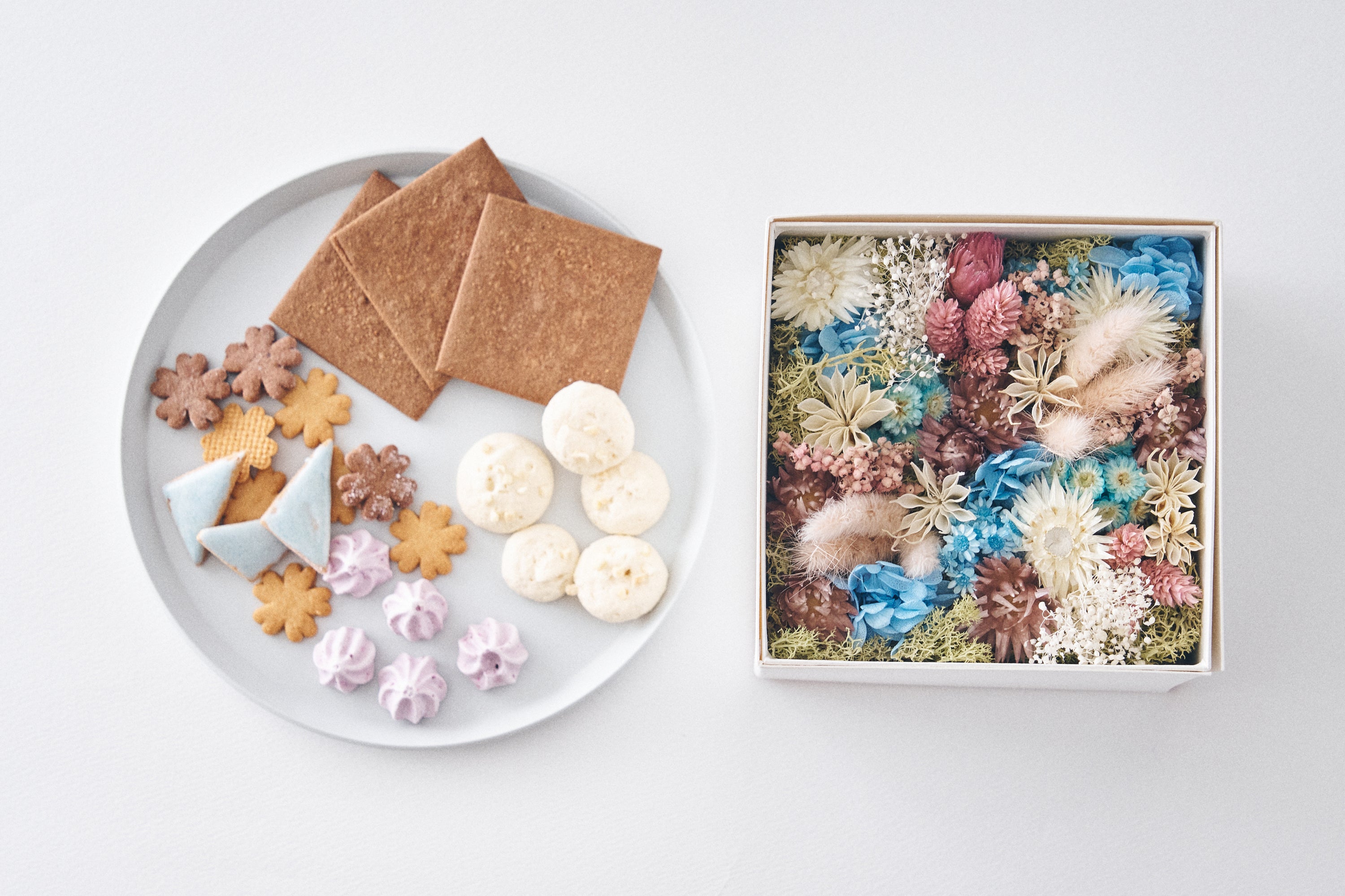 プロデューサー前田有紀さんが率いる“花とあなたが出会う場所”がコンセプトのフラワーデザインチーム「gui flower design」とコラボレーションした“お花×お菓子”の特別限定BOXが、オンラインショップ限定で新登場。