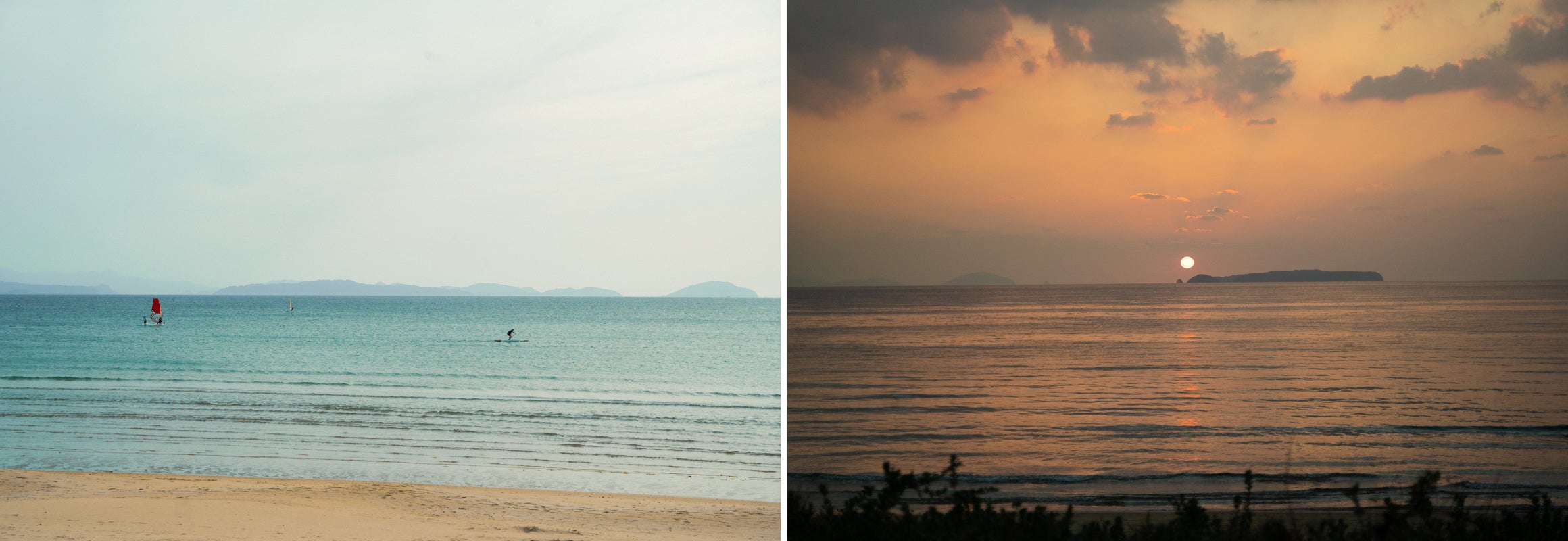 遮るものなく広がる海と空、息を飲むように美しい夕日。