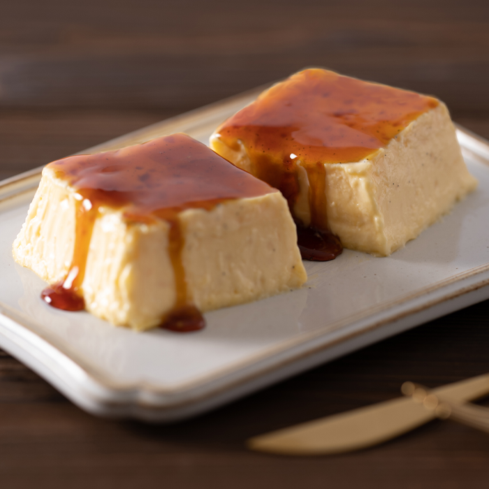 Ricoとは「豊かな味わい」を表すスペイン語。北海道産の純生クリームとミルクを使用し、口どけのなめらかなカタラーナをひとつひとつ手作りでお届けします。温度に気を付けながらブルボンバニラのバニラビーンズを煮出して香り付けし、北海道産純生クリームは乳脂42%と35%をブレンド。濃厚さも感じさせながら食べた後の余韻が重くなりすぎないようにしています。
