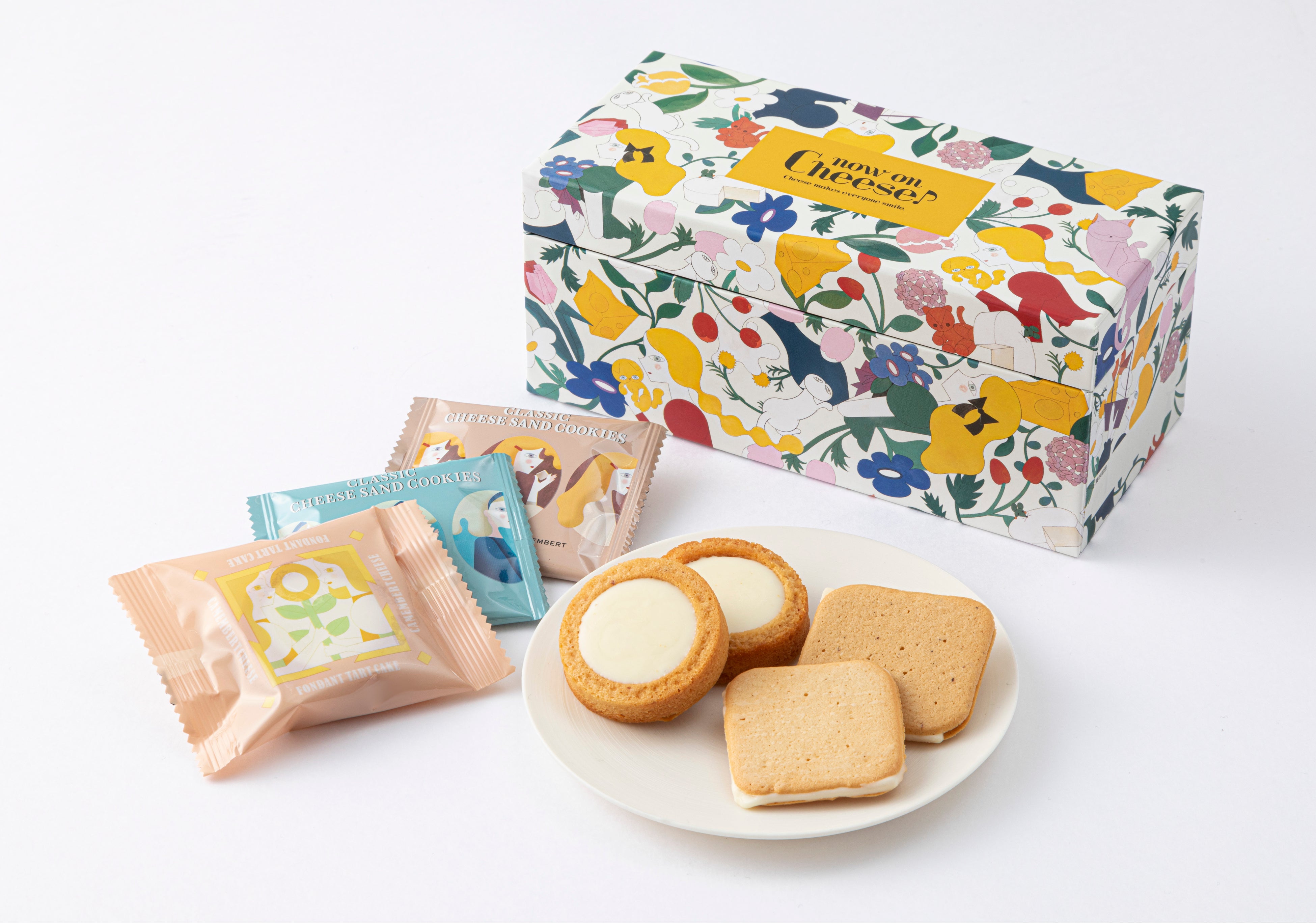 カマンベールチーズを贅沢に使用した一番人気商品のフォンダンタルトケーキと濃厚なチーズ感が魅力的な「スモークチーズ&カマンベール」、「カラメル&ゴルゴンゾーラ」の2種のチーズラングドシャを詰め合わせた特別なBOXです。