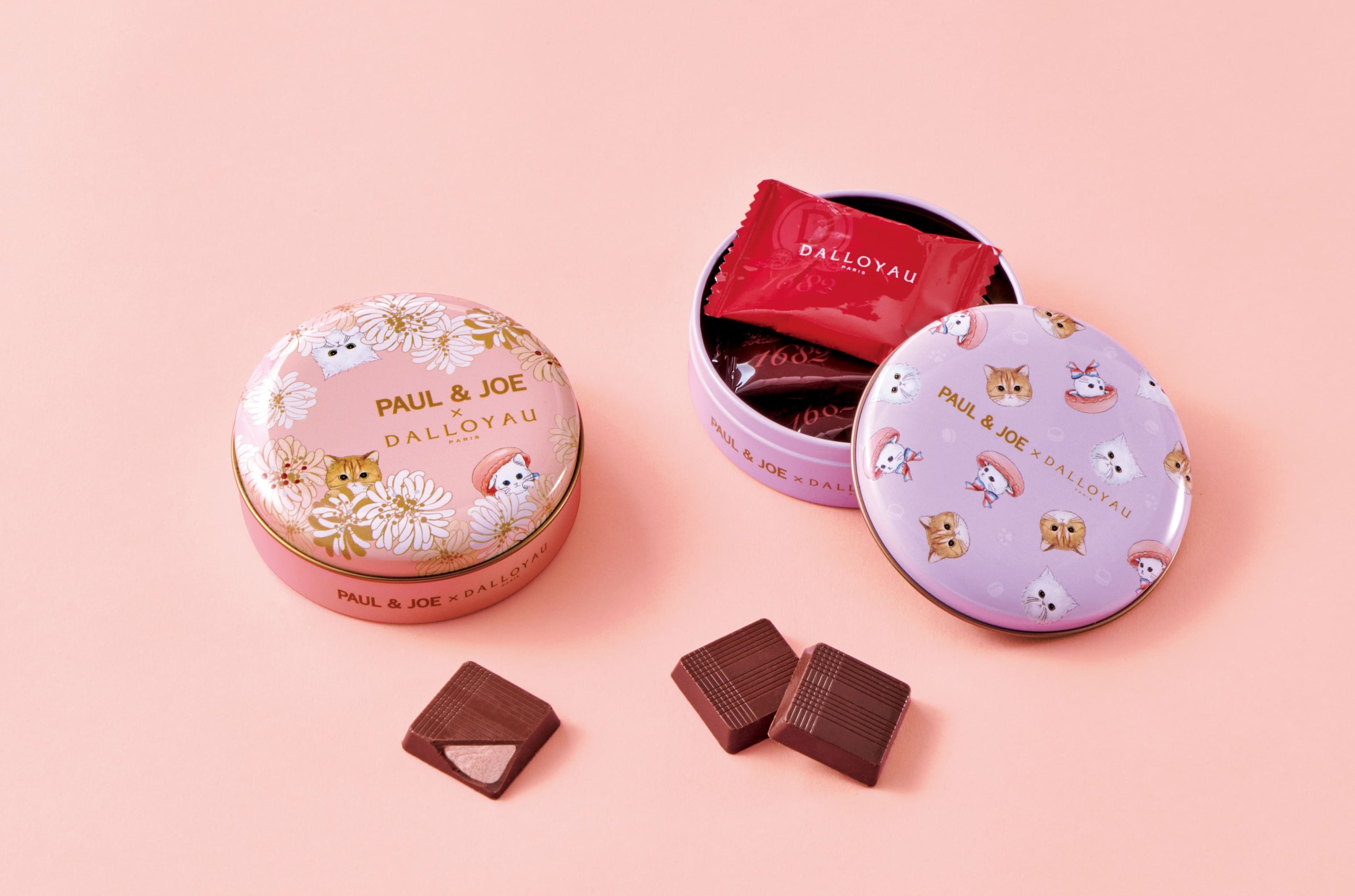 フランス発祥のブランドPAUL & JOEと初のコラボレーション。PAUL & JOEのキャラクター・ヌネットとジプ シー、DALLOYAUのキャラクター・ジョセフィーニャ。仲良しの3匹の猫をデザインした限定缶に、ショコラを詰め合わせました。