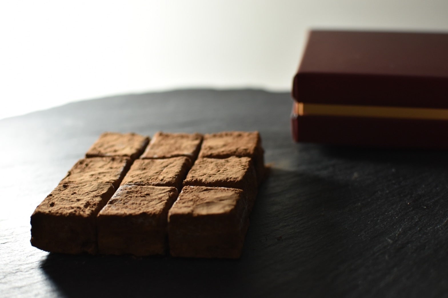 Dari.Kのカカオ・十勝しんむら牧場の生クリーム・日本果汁レモンピールを使い、個々の良さを最大限活かし全体のバランスを重視した3層の新食感。「噛む生チョコレート」。