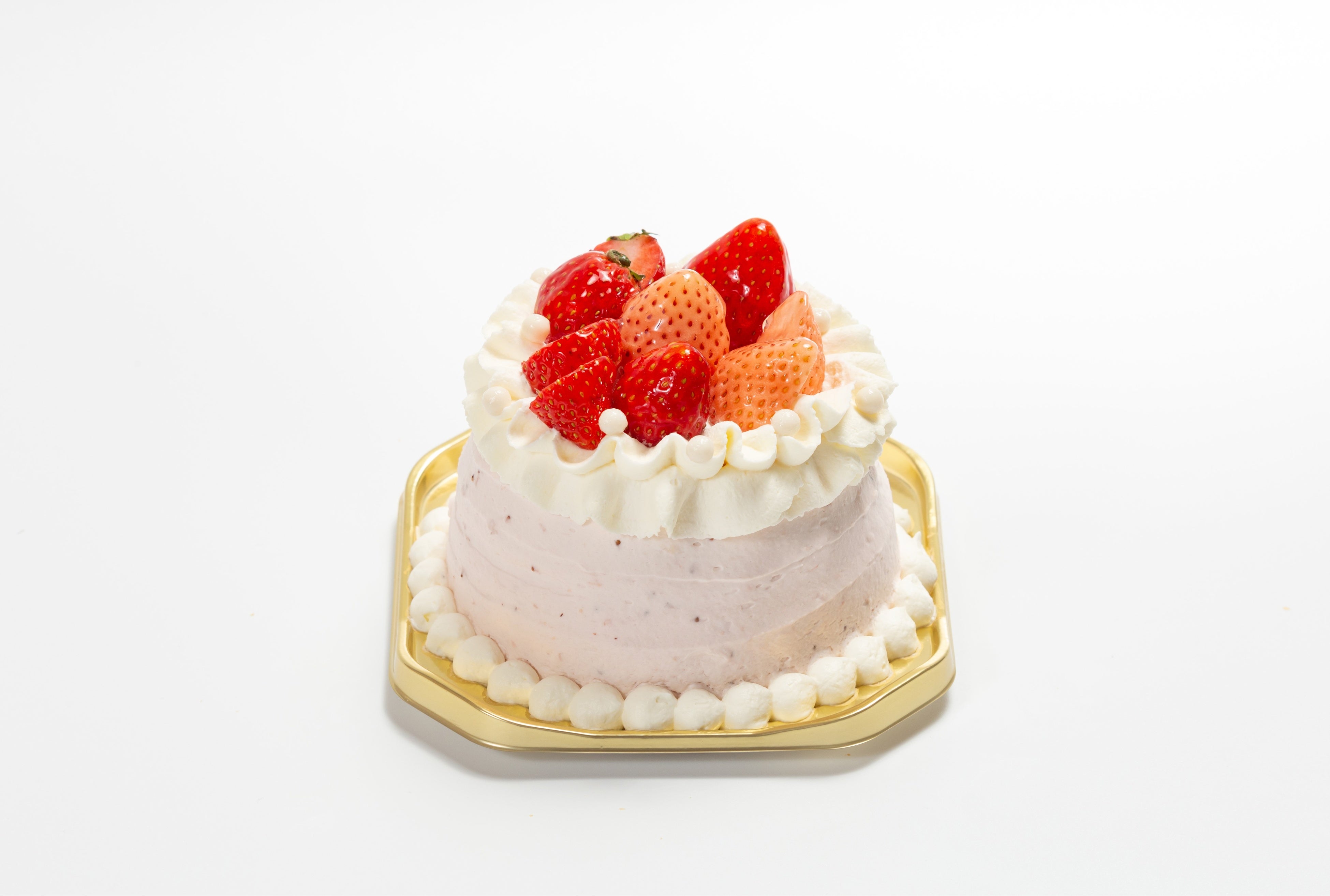 淡いロゼ色のケーキに苺をあしらって仕上げたフルーツ専門店が作るホワイトデーのケーキです。