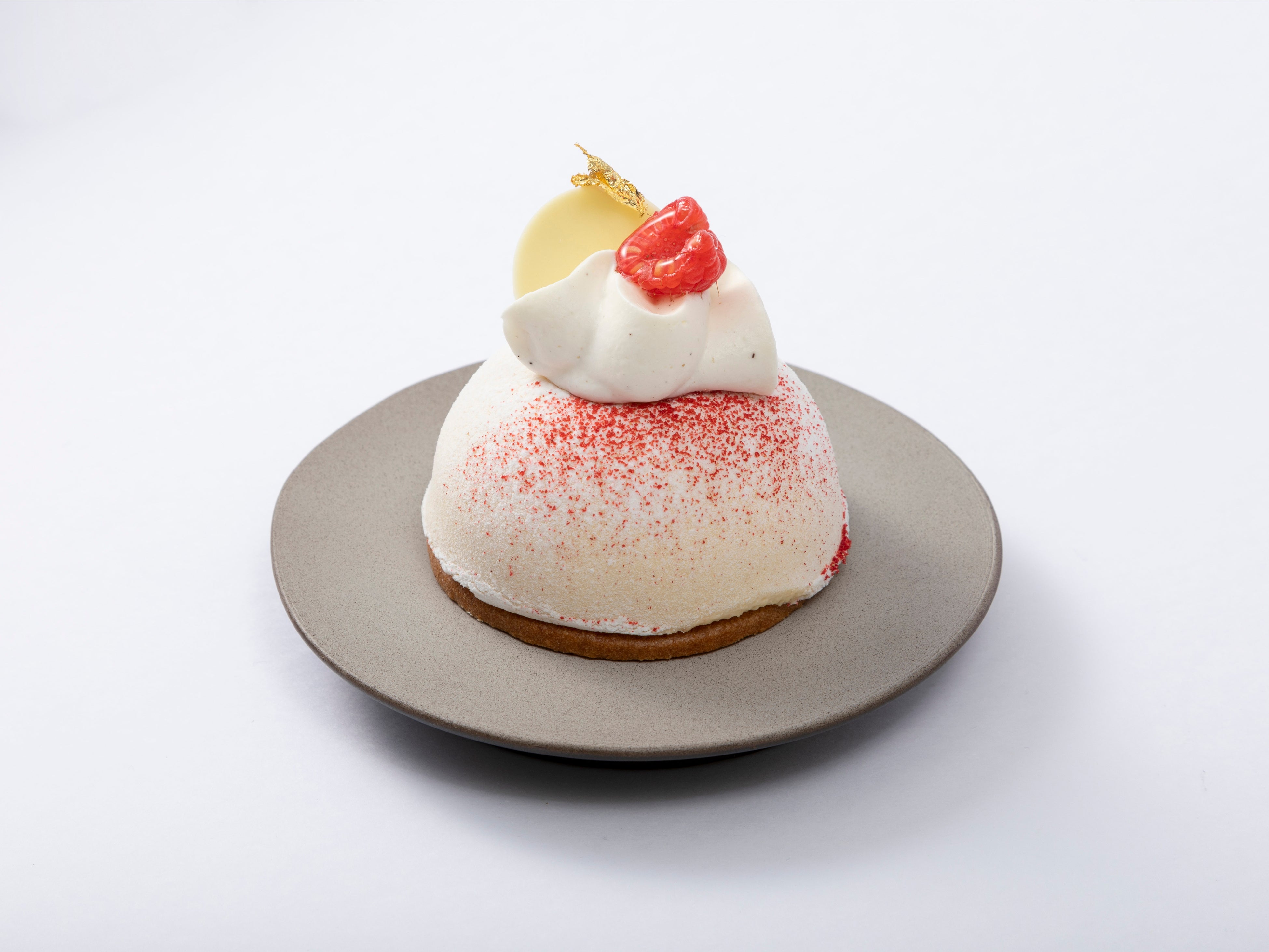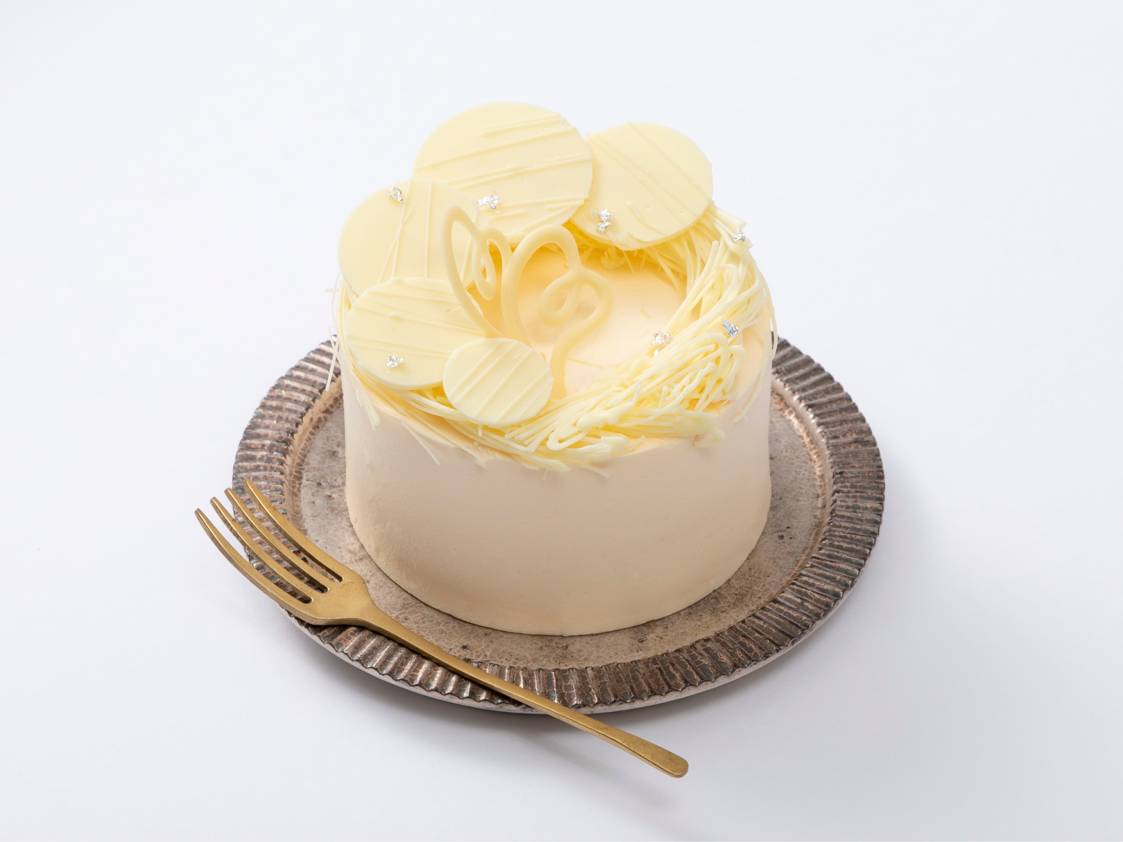 ホワイトデーに合わせて仕上げた象牙色のケーキ。ホワイトチョコムース、ピスタチオクリーム、ベリーの組合せをお楽しみください。