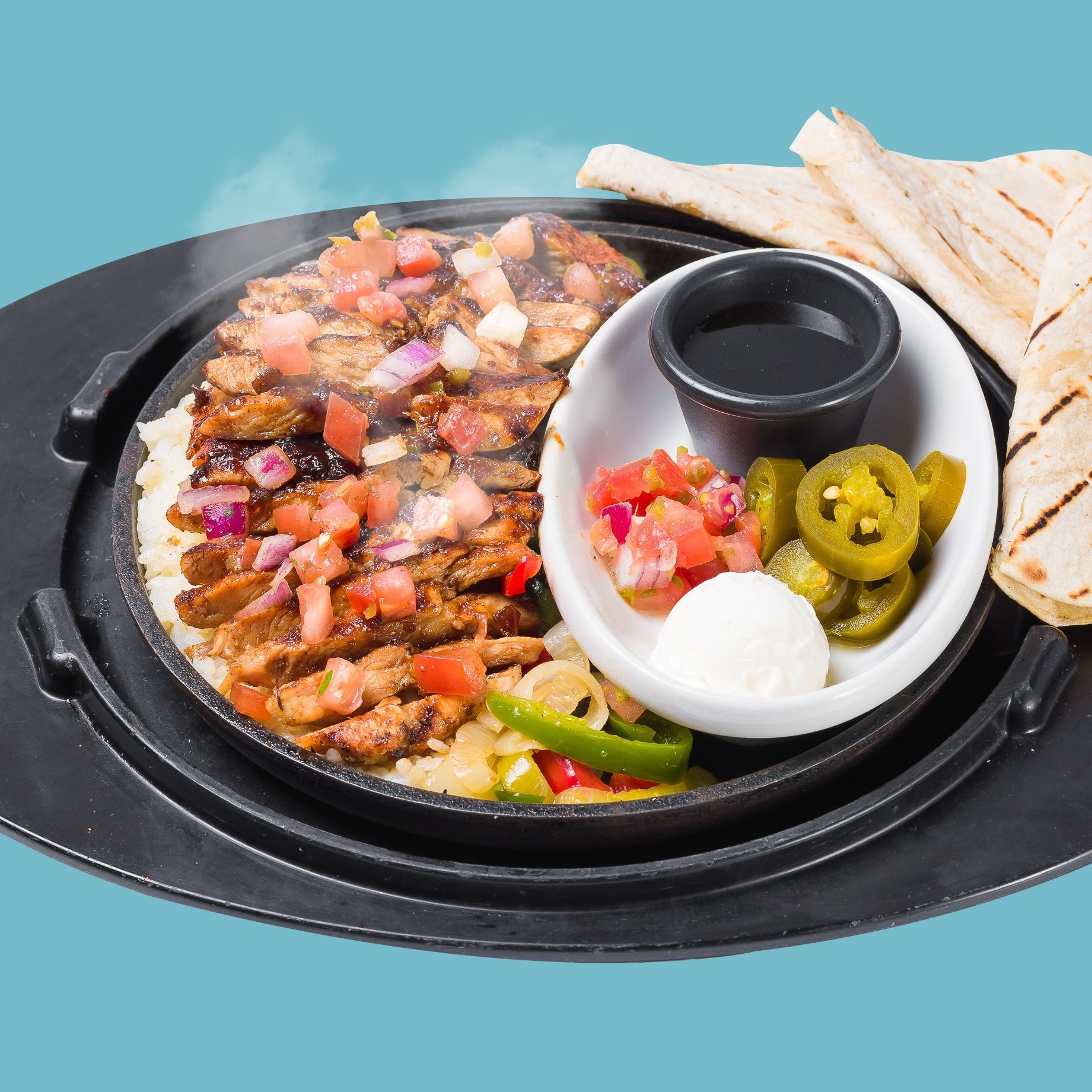 ケイジャンスパイスでシーズニングした、ジューシーなグリルチキン2枚または、サーロインステーキを甘くてコクのある特製のフライデーズシグネチャーソースで絡め、アツアツの鉄板にバターライス、ペッパーオニオンに盛り付け、ピコデガヨで彩り豊かに仕上げました。グリルしたトルティアに具材を乗せて、サワークリーム、ピコデガヨ、ハラペーニョスライスをお好みでトッピングしてお召し上がり下さい。