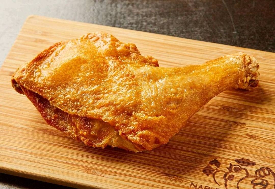 秘伝のスパイスで下味をつけた国産若鶏を、一切の衣を使わず高温で一気に素揚げをすることで、ジューシーでパリパリな骨つきもも肉に。豪快に被りつく、幸福感はたまらない一人でも気軽にお召し上がりいただけるボリュームと鶏の旨みをぎゅっと詰め込んだ待望の新メニューをぜひご賞味ください。