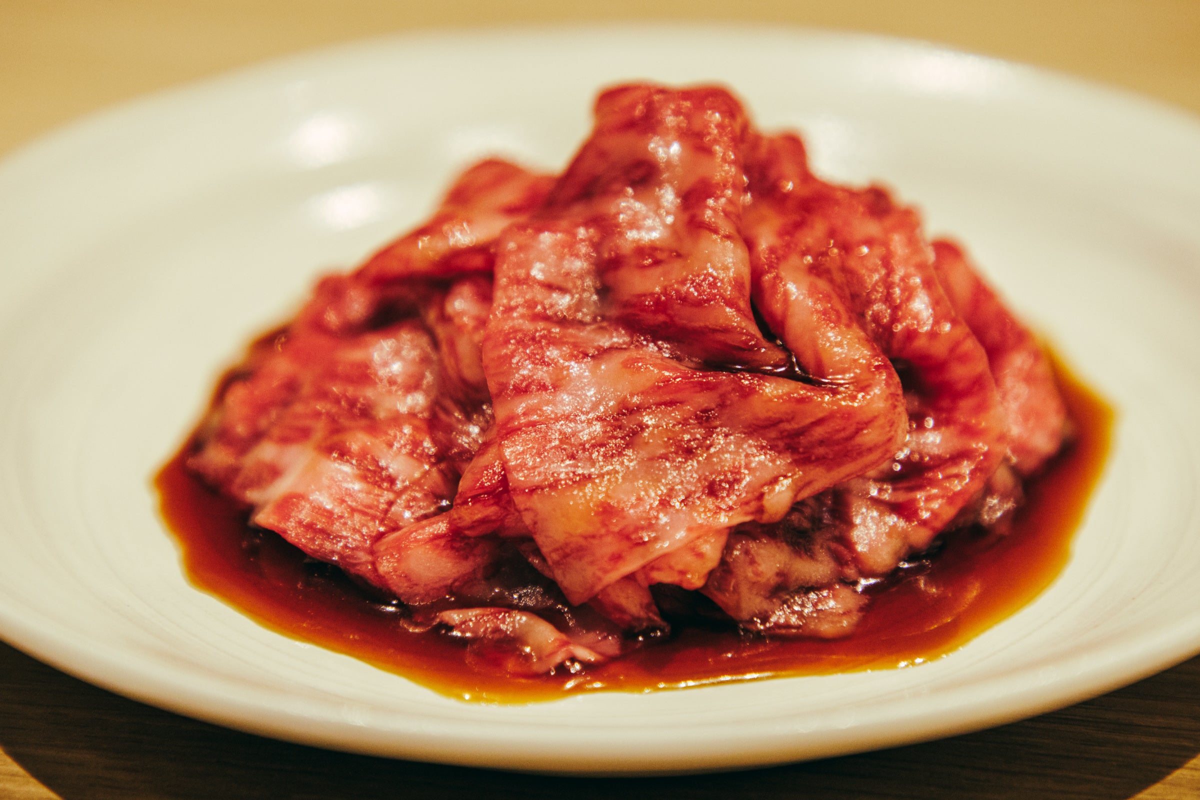丁寧に手切りした新鮮な赤身肉に特製ダレを纏わせ、さっと炙ってお召し上がりください。柔らかな食感と、凝縮した肉の旨みを感じられる、職人の技が随所に施された逸品です。