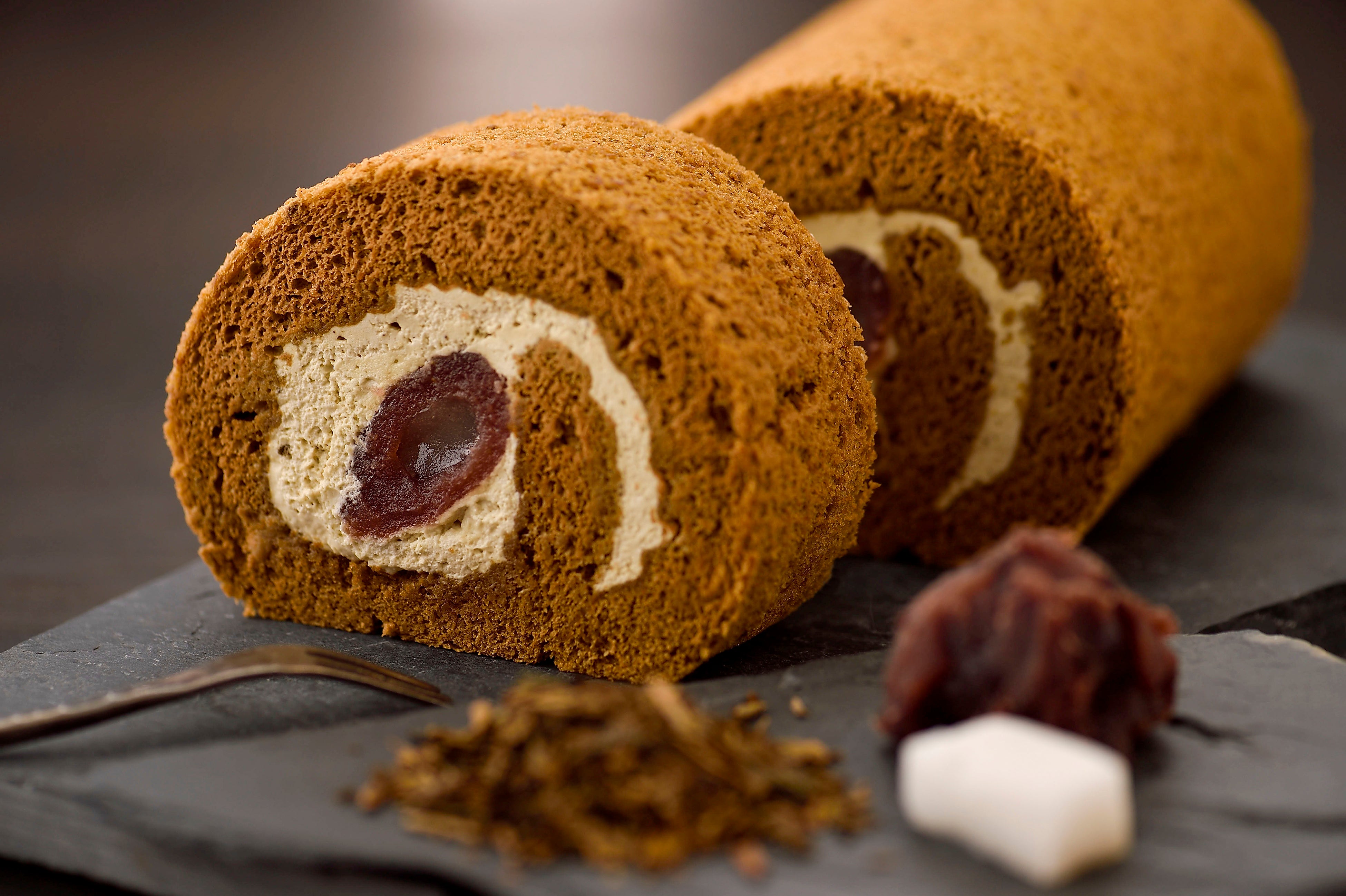 香炉庵さんからは、特製の「求肥餅」と「こし餡」を提供して頂き、霧笛楼でも初の試みとなる、香ばしい「ほうじ茶」のクレームシャンティと、同じく「ほうじ茶」のスフレ生地で優しく包み込みました。
