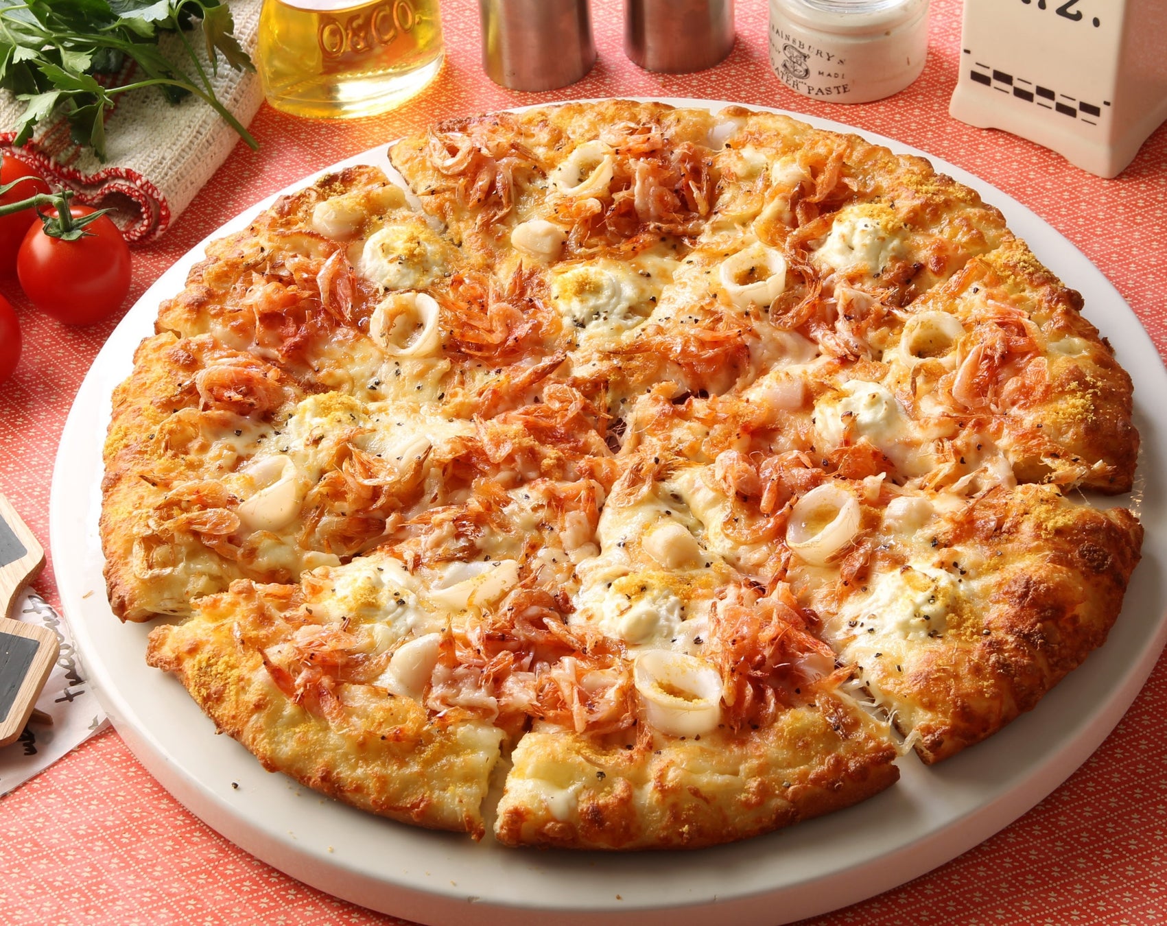 春の新商品『ボッタルガと桜海老のシーフードピザ』は、香ばしく焼き上げた「桜海老」と、本場イタリア サルディーニャ産「ボッタルガ(カラスミ)」の濃厚な旨みを最大限に活かした、春を感じる本格シーフードピザです。