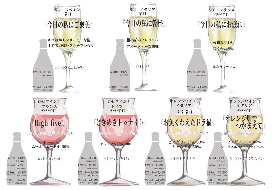 また、ボトル限定ワインも数種類取り揃えておりますので、ご利用シーンに合わせてお選びいただけます。