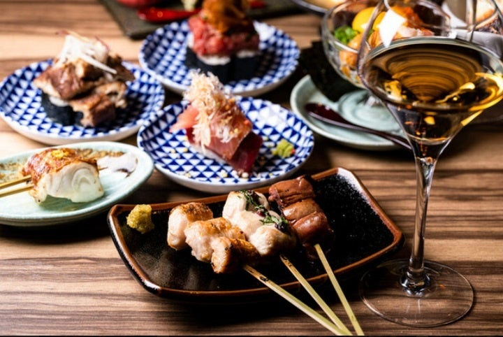 新業態となる『焼き鳥とワイン+あて寿司 3B 飯田橋』では、既存店である『焼き鳥とワイン+ビストロおでん 3B 神保町』の“焼き鳥とワイン”を基に、さらに少人数様でもお楽しみいただける、お寿司を合わせました。毎朝直送される「銘柄鶏」の焼き鳥、世界各国の16種のグラスワインと共に、ペアリングでもお楽しみいただけます。