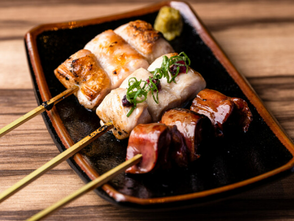 焼き鳥の肝である仕入れにこだわり、毎朝生産者さんから届く「銘柄鶏」を備長炭でじっくり焼き上げます。部位ごとのの魅力を最大限に活かし、味付けにもこだわりました。職人が炭火で焼き上げる「炭焼き串」をお味わいください。