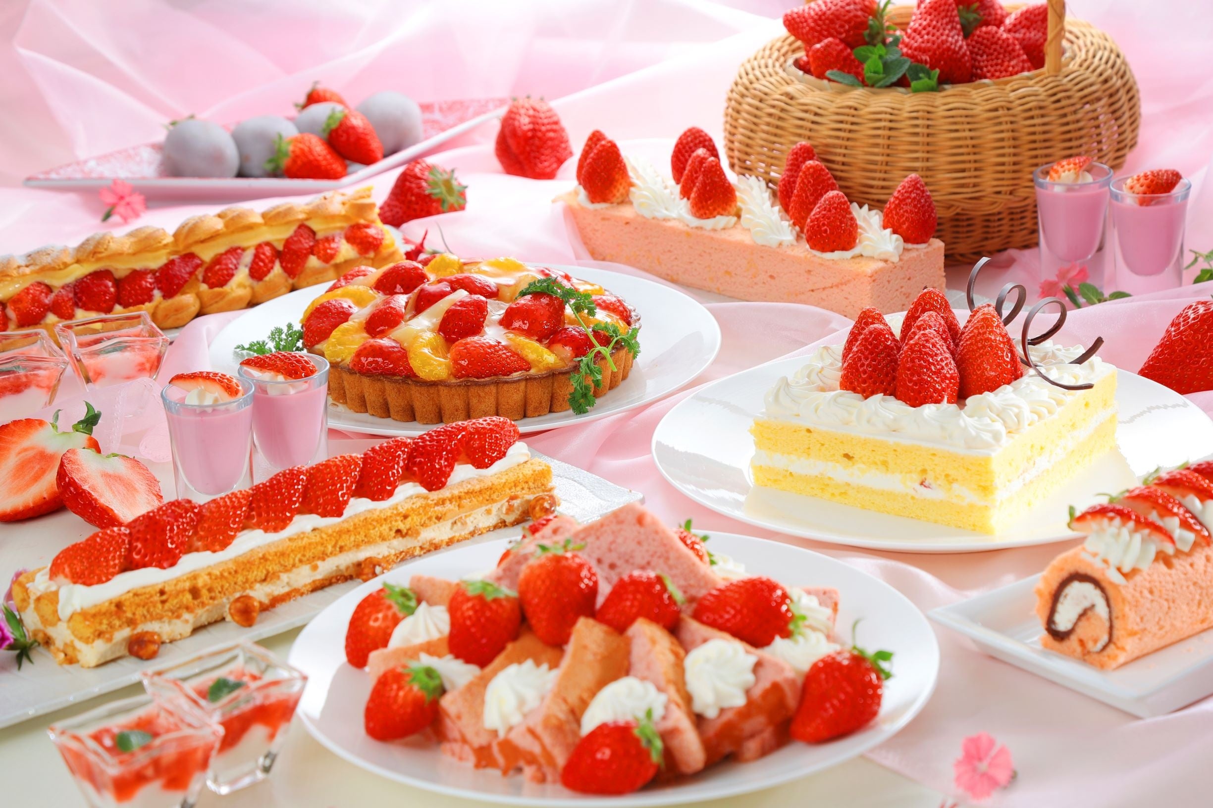 甘味と酸味のバランスが良く、芳醇な香りの「紅ほっぺ」を定番のショートケーキやタルトなどに、甘くて柔らかく、酸味の少ない「あきひめ」は、大福やロールケーキなどに、さわやかな甘みと上品な香りの「かおりの」は、フレンチトーストやシフォンケーキにしてご用意いたします。さらに、2Lサイズ程度のフレッシュの苺3種類を、おひとり様各1個お召し上がりいただけます。ぜひ、それぞれの苺の違いをお楽しみください。