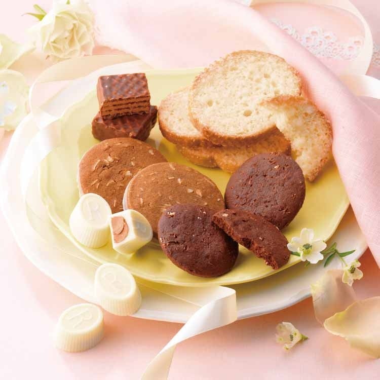 ホワイトデー限定のロイズアールショコラとカプチーノ風味のクッキーに、さくさくのラスクやほろほろ香ばしい”焼きチョコレート”、いちご味のウエハースを組み合わせたひと箱。味わいはもちろん、見た目や食感もワクワクする楽しさが詰まったギフトです。