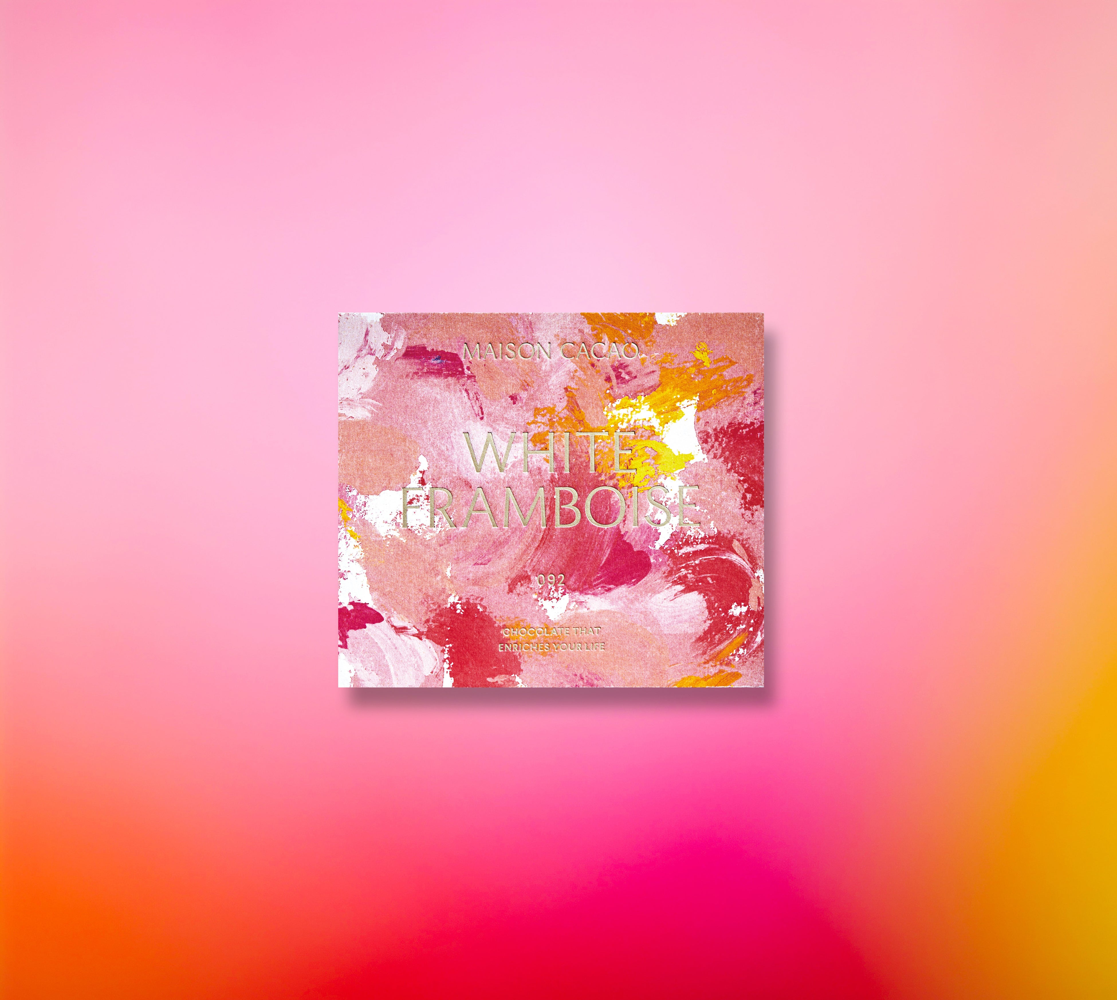 花のような華やかな香りと優しい甘さのホワイトチョコレートに、あまずっぱいフランボワーズを合わせました。「旅するメゾン」で出会った、北海道帯広の山間で育てられる国産フランボワーズは、味がギュッと詰まって濃厚なあまずっぱさと香りを持ちます。華やかに広がる味わいを紅茶やお酒とともに、お楽しみください。