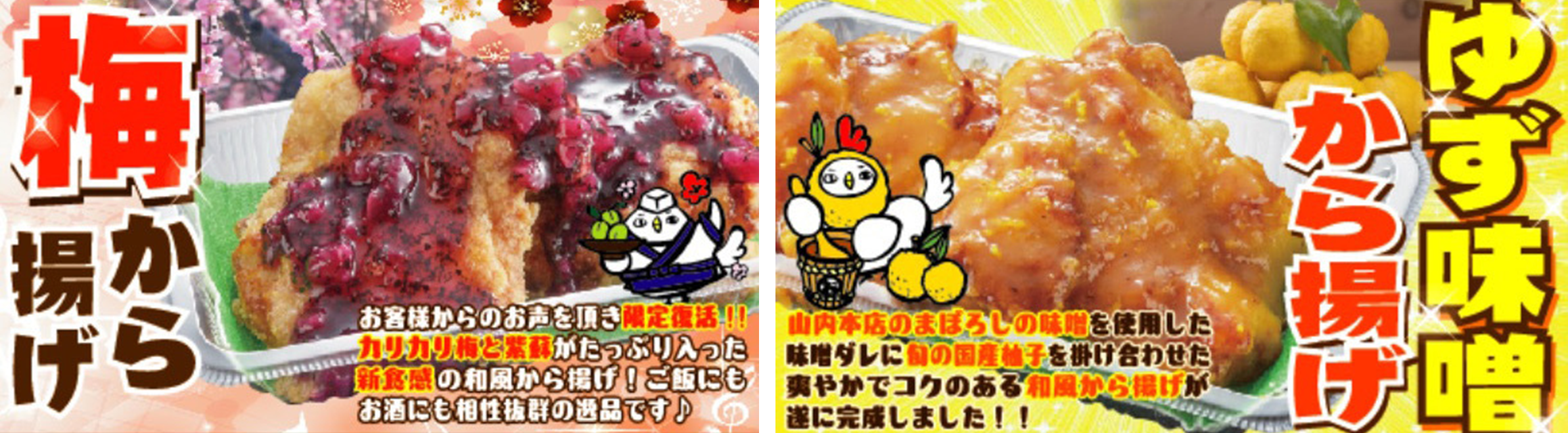 ■商品 :「梅から揚げ」、「ゆず味噌から揚げ」
