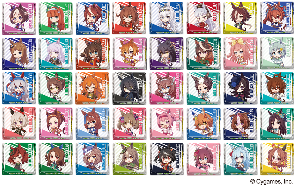 1,700万ダウンロードを突破し、2月24日に2周年を迎える大人気ゲーム『ウマ娘 プリティーダービー』とのコラボ商品!登場キャラクターのイラストを用いた個包装デザインは、全40種です。