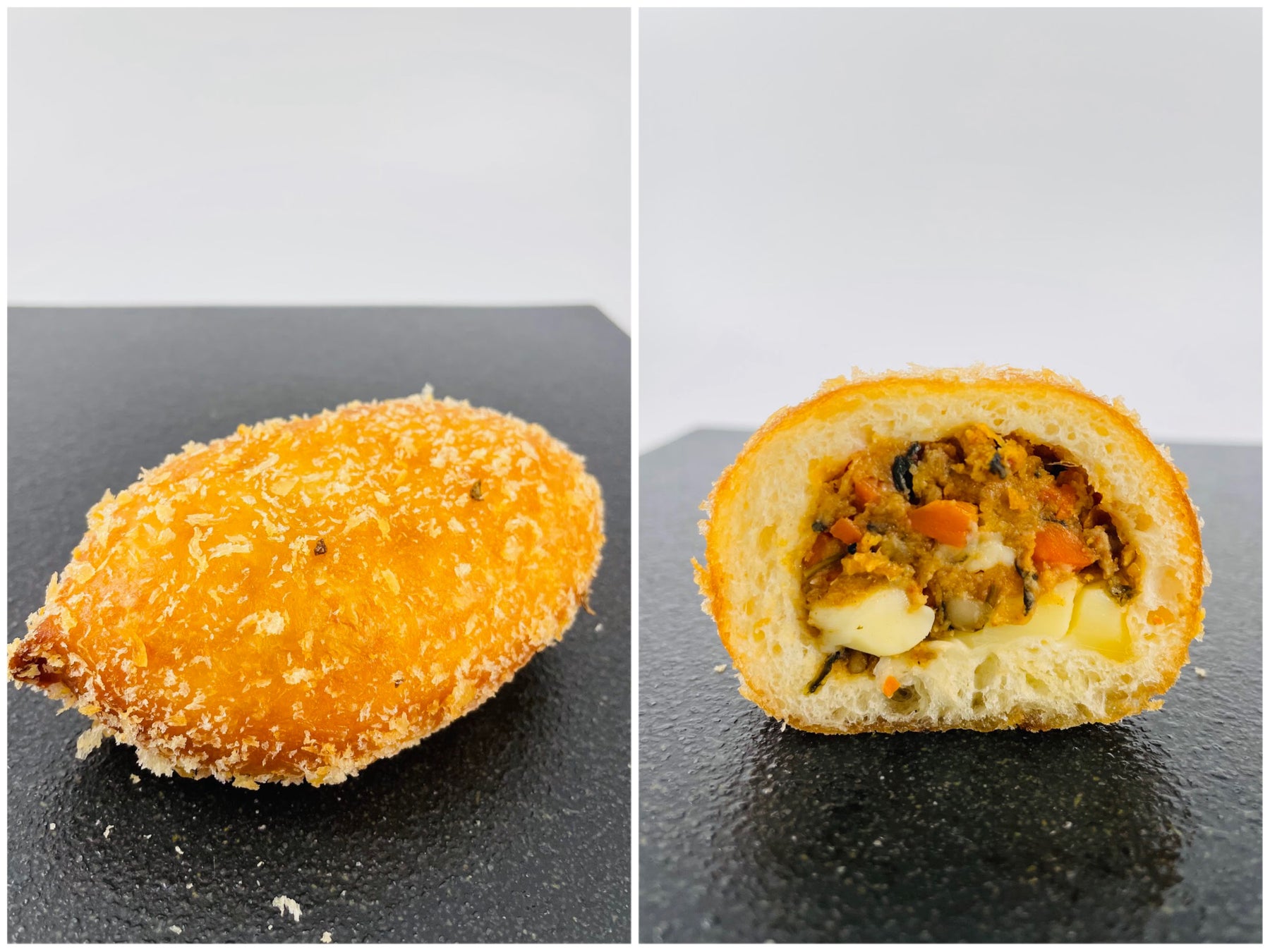 「卵」「にんじん」「トマト」を使った、山椒とチーズのトマトカレーパン