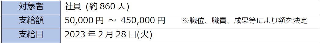 パート・アルバイト従業員へは、定期賞与を2023年1月31日に支給しております。この定期賞与は毎年1月と7月に支給しており、今後も継続いたします。