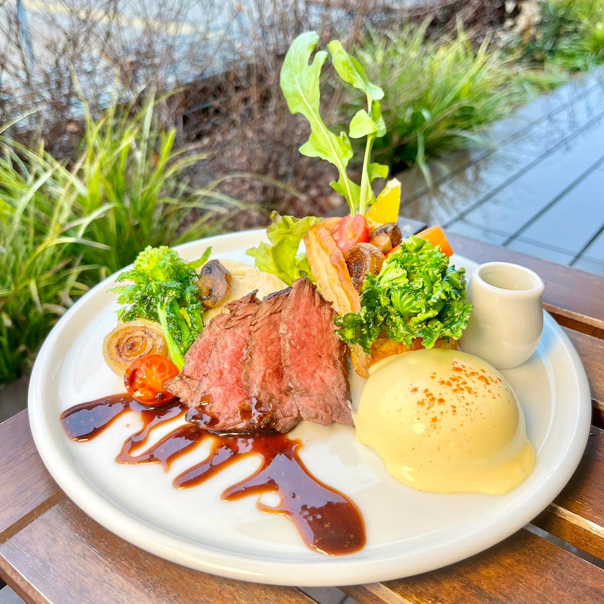 牛肉のグリル粒マスタードと春野菜のパイのエッグベネディクト ¥1,600