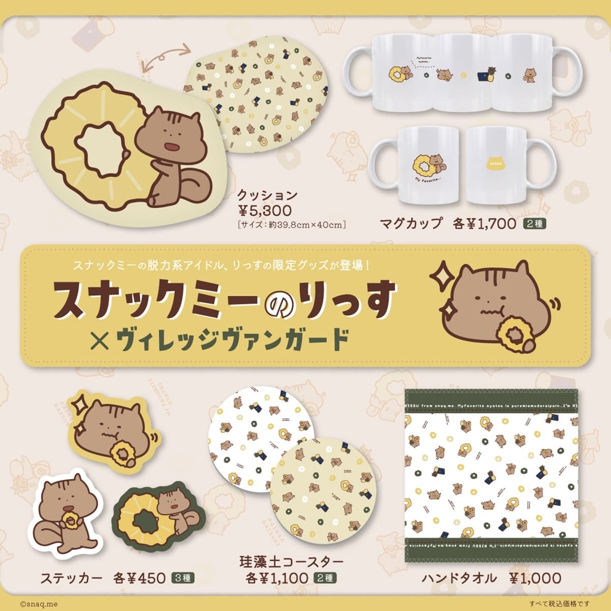 2023年2月17日(金)より、おやつ界の癒し系アイドル【スナックミーのりっす】のヴィレッジヴァンガード限定グッズがオンラインストアにて発売決定!!