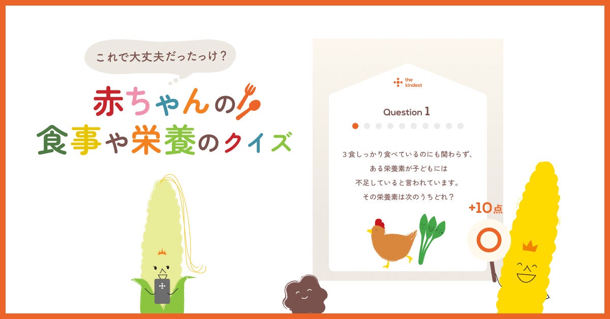 1. 下記リンクから、「これで大丈夫だったっけ?赤ちゃんの食事や栄養のクイズ」にアクセスし、10問の栄養クイズに回答