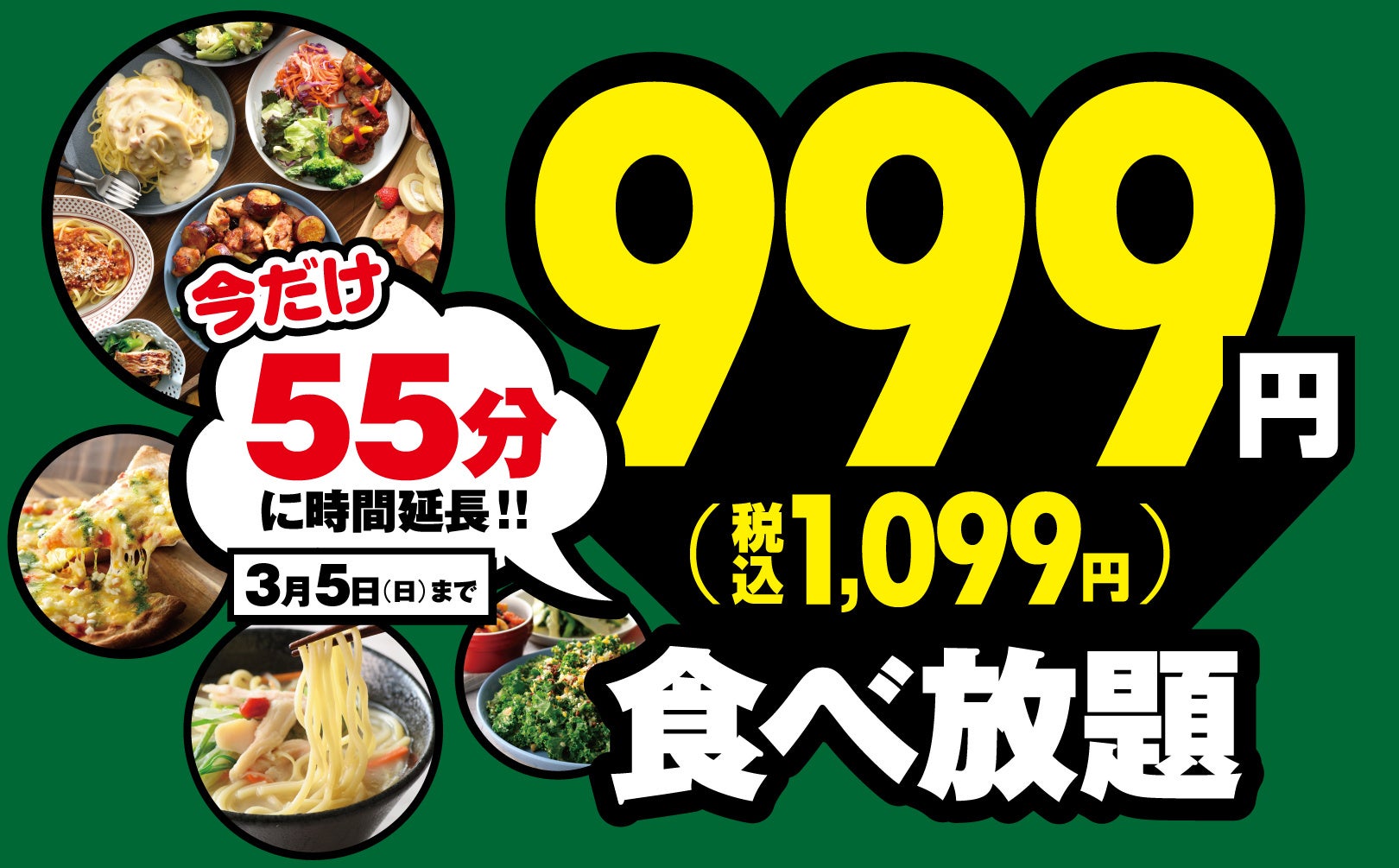 食べ放題のテーマパーク、 ニラックス株式会社(本社:東京都武蔵野市、 代表取締役:崎田 晴義)が運営する「グランブッフェ」などのニラックスブッフェ21店舗にて、2/20(月)より「45分間特別コース」が、価格そのまま『55分間』にてご利用いただけます。